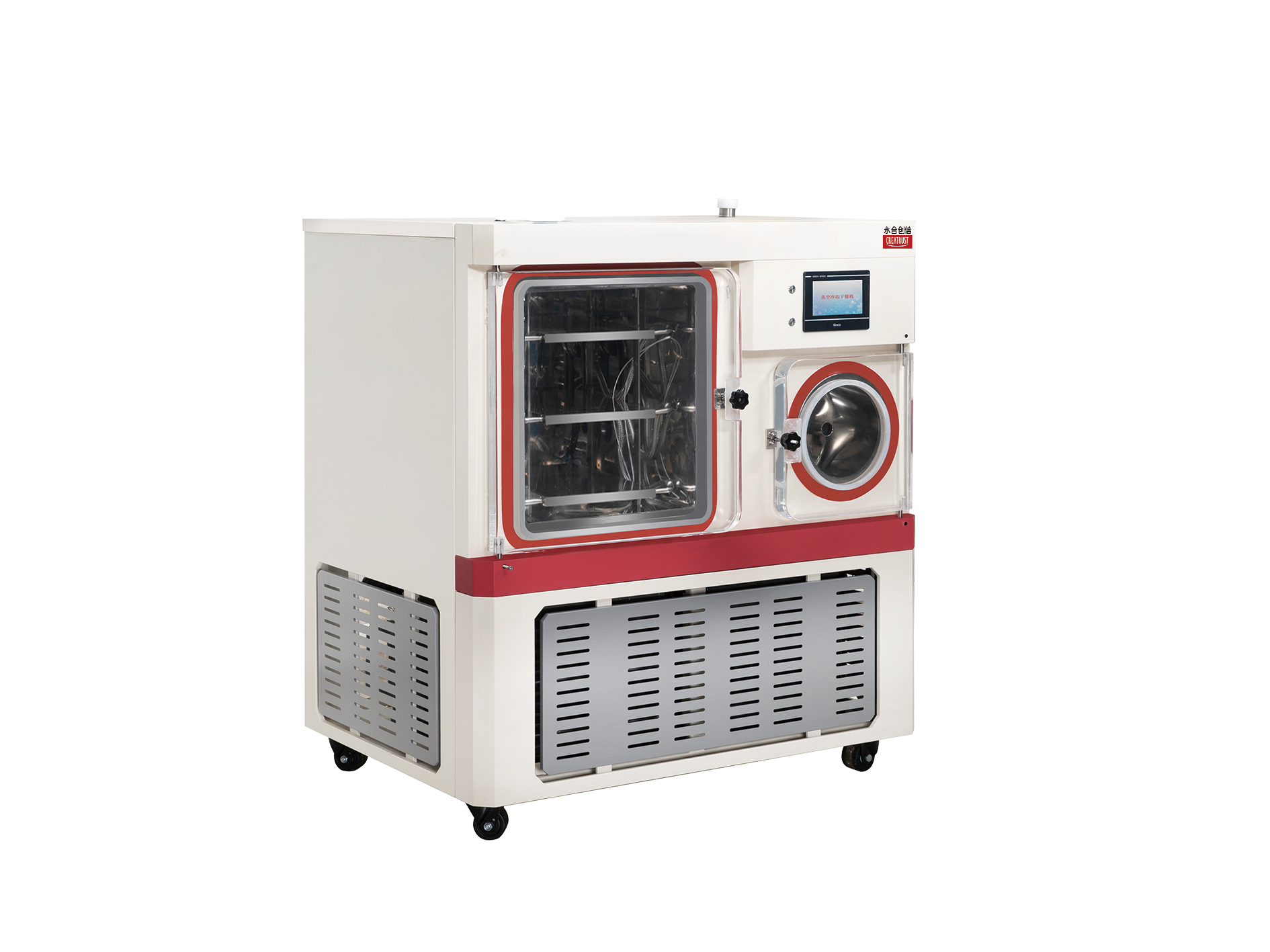 冷阱和(hé)幹燥室分體(tǐ)結構設計(jì),捕水(shuǐ)能力強,幹燥時(shí)間(jiān)短(duǎn);全不鏽鋼設計(jì),耐腐蝕易清潔,每層隔闆配備溫度傳感器(qì),可(kě)以監測每層物料的溫度及變化特性;